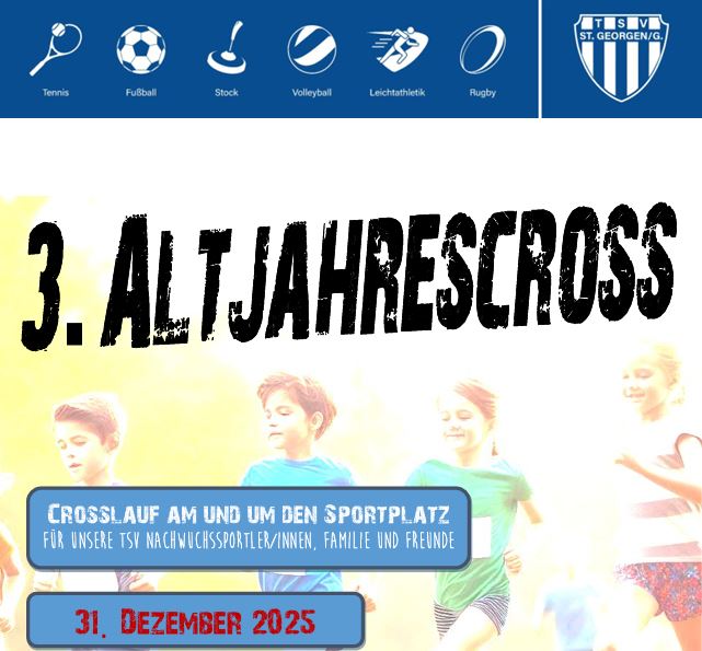 WeiterlesenDie Sektion LA lädt am 30.12.2023 ab 14 Uhr zum 1. Altjahrescrosslauf ein.Teilnahmeberechtigt sind alle, die von einem TSV-Nachwuchskind eingeladen